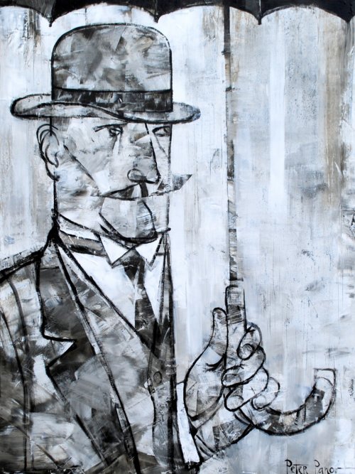 Peter Panov draws on inspiration of the past, specifically Paris in the 1920s, to create his detailed paintings of the idea of "Man and his City". He is an artist who uses textures and vibrant shades of colours to captures moments of joy and fantasy.
