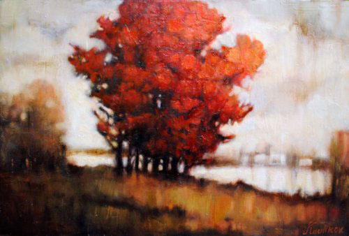 Irina Koulikov - explored her musical talents by studying vocal music at Leningrad Conservatory for two years and later becoming a choir singer at the Rimsky-Korsakov Opera Theater. In the early nineties, Irina’s paintings began to show the stylistic influences of Oleg Koulikov, who she eventually married. By 1993, she had left her singing career to devote herself to painting on a full time basis. The Dutch masters and French painters influence Irina’s work. Her flattened forms and textural emphasis are not unlike the work of Marc Chagall. Employing an encaustic method, her distorted perspectives and calculated relationships between elements create a sense of tension. Irina’s landscapes parallel nature but are independent of it, therefore, drawing one’s attention to the materials used in the piece and its color effects. In her still life work, the warm rich browns, stark creams, and vibrant reds combined with her deliberate placement of items are inspired by the work of 18th-century artist Jean-Baptiste-Simeon Chardin. Irina’s work can be found in private collections worldwide. If you are interested in adding artist Irina Koulikov’s artwork to your collection, contact us now!