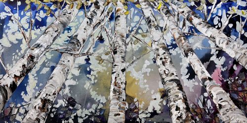 Terri Hallman is an artist who creates many layers in her work but makes it look deceptively simple. She uses dry pigment and tape to create her textures and layers.